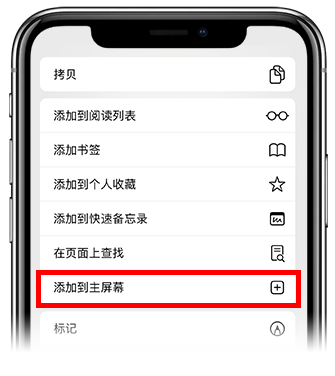 向下卷动选项列表,然后点击「添加到主屏幕」。